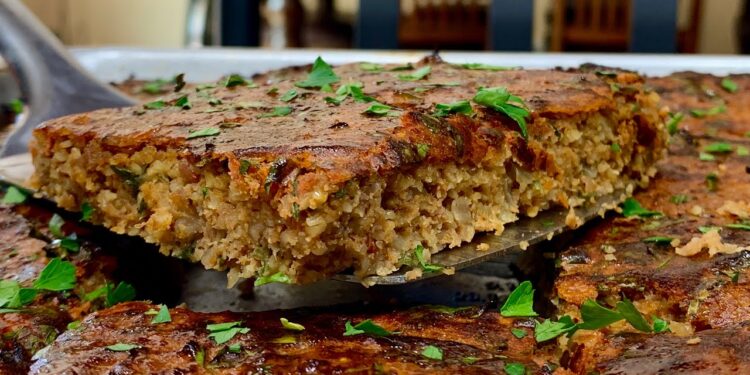 3. نضعهم في صينية مدهونة ونضيف الخليط.