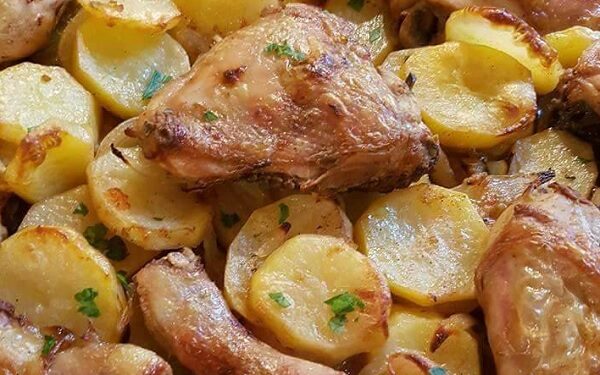 - نضع قطع الدجاج ونضع قطع البطاطا وجمع المكونات السابقة ثم نضعه في البريستو(حلة الضغط) لمدة نصف ساعة.