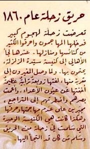 من جهة أخرى، نذكر أنّ الفرنجة تدخّلوا بعد ثورة 1860 وأُعطِيَ المسحيّون في زحلة بعضًا من الحرية في ممارسة شعائرهم الدينية. فكانت زحلة هي المدينة الوحيدة الّتي تدقّ أجراسها أثناء الحكم العثماني. كذلك صدرت، يومذاك، جريدة ”زحلة الفتاة“ الّتي كانت تكتب مقالات ضد الحكم العثماني.