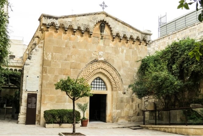 تأسّست هذه الكنيسة على يد الصليبيين في القرن الثاني عشر، وهُجِرَت لقرون عدّة بعد ذلك. وفي العام 1838، كُلِّف الرهبان الفرنسيسكان بالإشراف عليها، وأُعيد إحياء العبادة فيها بفضل كرم رجل يُدعى ماكسيميليان من بافاريا، كما يُظهِر لوح حجريّ مثبت على واجهة البناء.