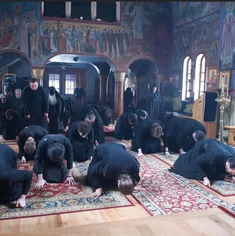 فأدركُوا أنَّ مشيئةَ اللهِ تُريدُ أنْ تُؤدَّى هذِه الصلواتِ فِي حالةِ سجودٍ و خشوعٍ. و منْ ذلكَ الحينِ أخذتِ الكنيسةُ هذِه العادةَ إلى يومِنا هَذا.