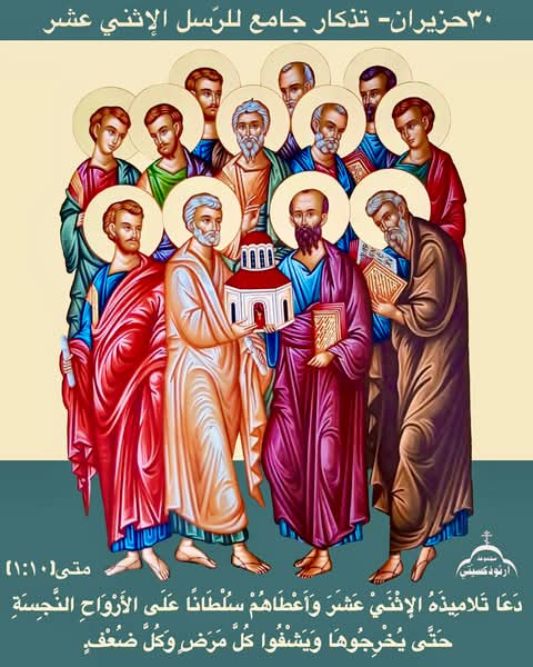 هؤلاء هم الرسل الإثنا عشر الذين طافوا المسكونة مبشّرين بالمسيح, وقد ذاعت أصواتهم في كل الأرض. وأسسوا الكنيسة بأعراقهم ودمائهم. وفيهم قال بولس الرسول برسالته الأولى إلى أهل كورنتس: “إني أظن أن الله قد ابرزنا نحن الرسل آخري الناس كأننا مجعولون للموت, لأننا قد صرنا مشهداً للعالم والملائكة والبشر. نحن جهال من أجل المسيح، أما أنتم فحكماء بالمسيح. نحن ضعفاء وأنتم أقوياء، إلى هذه الساعة نحن نجوع ونعطش ونعرى ونلطم ولا قرار لنا. ونتعب عاملين بأيدينا. ونُشتم ونبارك، نضطهد فنتحمل وقد صرنا كأقذار العالم”. (١ كور ٤ : ٩ ….). ولكل من هؤلاء الرسل تذكار خاص به على مدار السنة. غير أن أمنا الكنيسة الشرقية تقيم لهم تذكاراً جامعاً في هذا اليوم، تحريضاً لنا على زيادة تكريمهم والاقتداء بفضائلهم والالتجاء إلى شفاعتهم.