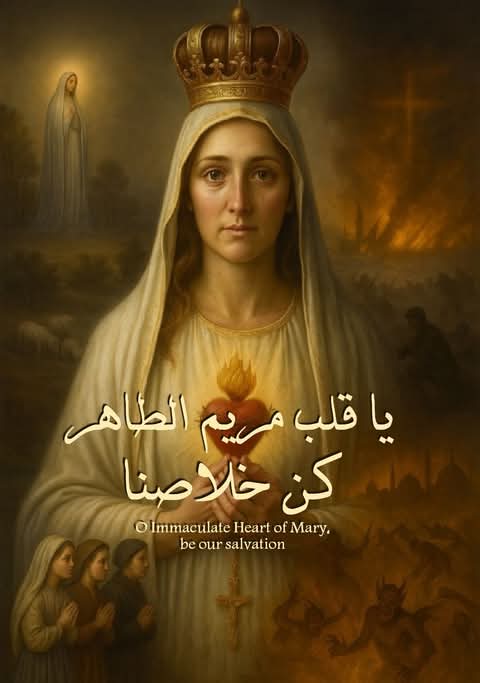 مريم ، يا بتولاً قادرة و أمّ الرحمة، يا ملكة السماء و ملجأ الخطأة، إننا نكرّس أنفسنا لقلبك الطاهر.