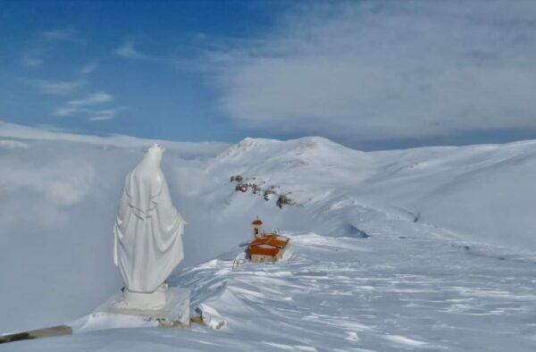 في الشتاء، الكنيسة تتحول لقطعة بيضاء كأنها من الجنة. الثلج الأبيض يغطي كل شي حواليها، والطريق إليها صعبة.