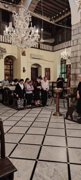 روت لنا بعض السيدات العضوات في أخوية القديس حنانيا الرسول اللواتي كن في حين استطلاعنا للكنيسة يقمن ببعض الأعمال الخيرية للفقراء وأقمن بالتالي بصلاة البراكليسي الابتهالية لوالدة الإله وكان ذلك مساء أحد الثلاثاء، حيث موعد اجتماعهن الاسبوعي.