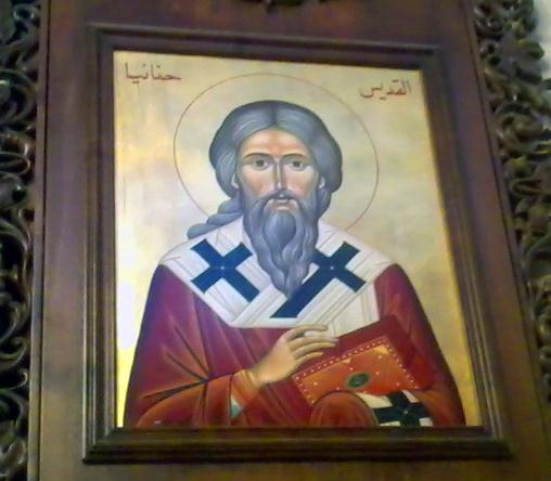 هو حنانيا، التلميذ المذكور في الإصحاح التاسع من سفر أعمال الرسل. كان في دمشق عندما جاءها شاول – الذي صار بولس الرسول فيما بعد- وكان شاول قد انطلق من أورشليم مزوداً برسائل من رئيس الكهنة إلى الجماعات اليهودية في دمشق حتى إذا ما وجد أناساً تبعوا يسوع المسيح، رجالاً ونساء، ساقهم موثقين إلى أورشليم، لأن اليهود