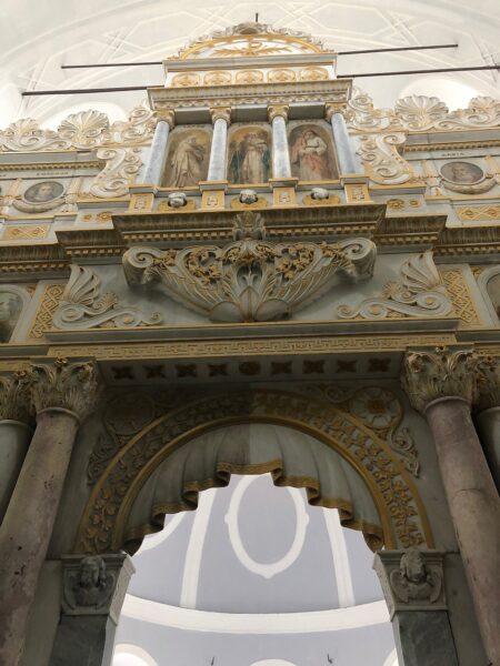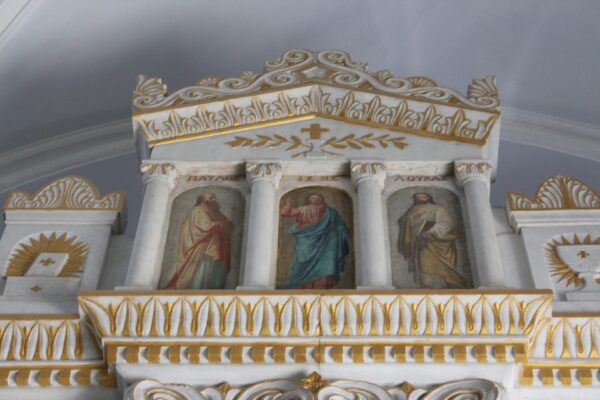 أُغلقت النارتكس (النارثكس) المكونة من طابقين في القسم الغربي. ويمكن الوصول إلى الطابق الثاني عبر درجين يقعان خارج الجدارين الشمالي والجنوبي. يُغطى جانب المحراب بستارة. ويُحفظ الأيقونسطاس، وهو المكان المقدس الذي يضم أيقونات القديسين، في قسم المحراب خلف الستارة.