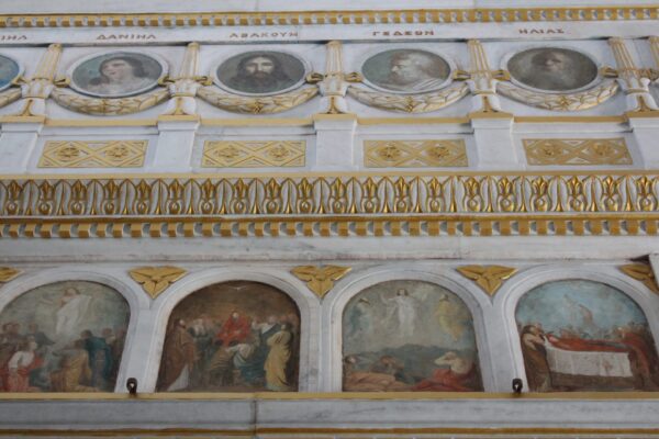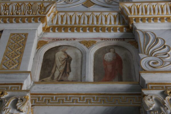 بدأ بناء كنيسة آيوس قسطنطين، التي بُنيت باستخدام حجر الأنقاض، في ثلاثينيات القرن التاسع عشر على يد يوحنا هالوباس لهذه الطائفة، وافتُتحت عام ١٨٧٤. تُعرف أيضًا باسم كنيسة العذراء مريم، إذ يُعتقد أنها بُنيت بمساعدة العذراء مريم.