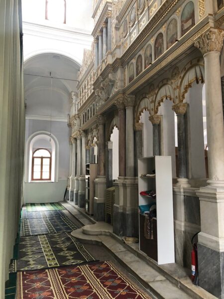 مسجد كان كنيسة يونانية ولكن …..! بعد ان تحول إلى كنيسة مازال كل شي في المسجد كما هو مثل الصور التي كانت فيه منذ أن كان كنيسه