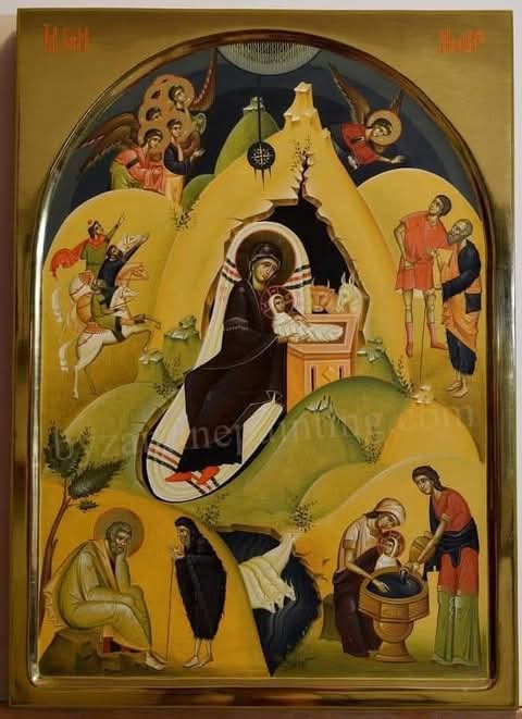 — عندما كانت العذراء مريم في المغارة بعد ولادتها جالسة تتأمل في الطفل الإلهي وتتفكر بكل ما جرى معها .