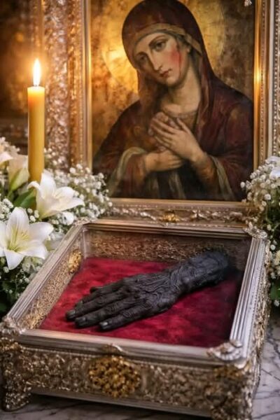 ولا تزال هذه اليد المتسوّدة محفوظة حتى اليوم في دير فاتوبيدي، تذكيرًا بجريمة الراهب، وبالرحمة العجيبة وشفاعة والدة الإله.