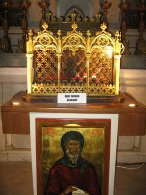 في عام 561، اكتُشفت رفات القديس أنطونيوس الكبير بطريقةٍ عجيبة، ونُقلت إلى الإسكندرية. وبعد غزو المسلمين لمصر عام 635، نُقلت إلى القسطنطينية. وفي عام 980، على الأرجح في عهد الإمبراطور باسيليوس قاتل البلغار، أُهديت الرفات إلى الكونت الفرنسي جوسلين. ووُضعت في كنيسة لا موت سان ديدييه، غير بعيدة عن فيين، التي كانت آنذاك ديرًا بندكتيًا تابعًا لدير مون ماجور قرب آرل.