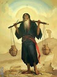 + خرج مرة من قلايته ومعه سلال ليبيعها فى الريف فقابله جمال فى الطريق وطلب إليه أن يسلمه القفاف ليحملها عوضاً عنه. فأعطاها له وسار وراءه فى الطريق ، ثم سمع الجمال يغنى بأغان عالمية بذيئة ورأى حوله شياطين ، فترك السلال وعاد إلى البرية.