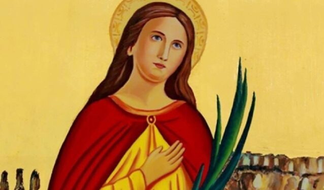 قوّاك الرّبّ فتحدّيتِ الولاة والحكّام وكلّ سلطانهم، ولم تخافي قتل الجسد، بل شخصتِ بقلبك وروحك إلى الملك السّماويّ عريسك الإلهيّ، ولم يثنكِ عن حبّ الصّليب أيّ عذاب، فكان استشهادك المحبب على قلبك جسر عبورك من دنيا الشّقاء إلى عالم البقاء، ونهلت من نبع الحياة، فصرت ينبوع نعم وبركات لكلّ من يطلب شفاعتك.
