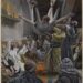 يسوع يُصلب على تلة الجلجلة مع مجرمين عن يمينه وشماله. فهتف: ” أبتِ، اغفر لهم لأنهم لا يعلمون ما يفعلون”. أما الجند فاقترعوا على ثيابه، والشعب يعاين بصمت، والرؤساء يتهكمون: ” أحيا آخرين! فليحيي نفسه إن كان هو المسيح مختار الله”! والجنود يهزأون: ” إن كنت ملك اليهود، فأحيي نفسك”!. ولص الشمال يشتمه: ” إن كنت أنت المسيح، فنجِّ نفسك، ونجّنا نحن أيضاً وكان فوق رأسه علّة صلبه: ” هذا هو ملك اليهود!”.